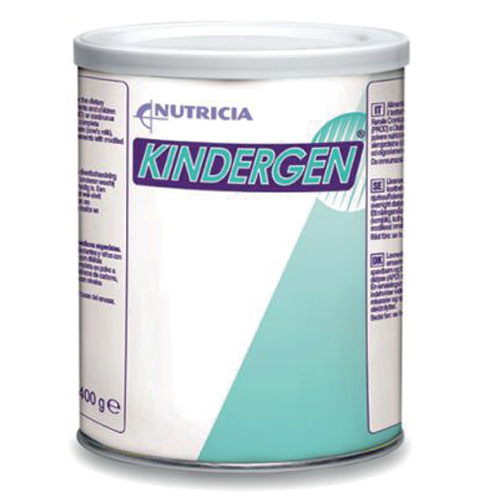 Kindergen is specifically designed as a sole source of nutrition or as a supplementary feed for the dietary management of infants and children with chronic renal failure where peritoneal rapid overnight dialysis (PROD) or continuous cycling peritoneal dialysis (CCPD) is required. In order to minimise the risk of bone disease, the phosphate level was designed to be low and the calcium level adjusted accordingly to give a calcium to phosphorus ratio of 1.2:1. Other modifications include slightly higher sodium and higher percentage of calories from fat. Suitable from birth onwards.